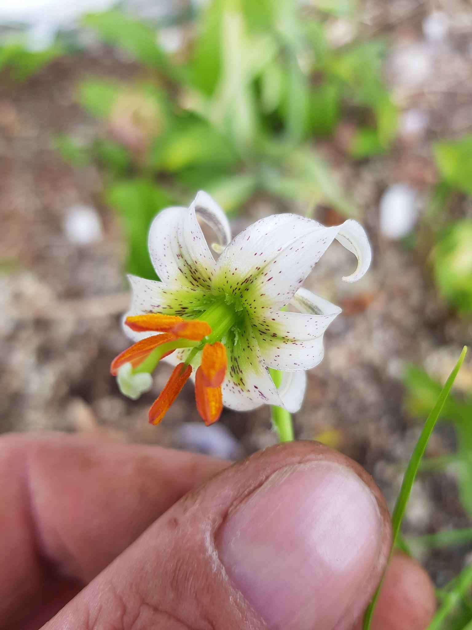 Starting with the basics: This is a very “polite” lily, with rather small, greyish white flowers on some 30cm tall stems. Native to dry limestone hills (or, one hill!) on the Sichuan-Tibetan plateau at 3250m altitude, it’s only known from it’s type location – where it’s seriously threatened by human activity.